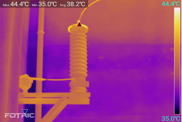 避雷器除制造質(zhì)量不好及運(yùn)行工況等因素引起的故障外,還有受潮和閥片老化故障。熱像儀可以及時(shí)發(fā)現(xiàn)避雷器異常發(fā)熱部位的位置和溫度分布情況,結(jié)果準(zhǔn)確,幫助現(xiàn)場(chǎng)人員及時(shí)檢測(cè)并排除故障,避免事故發(fā)生。