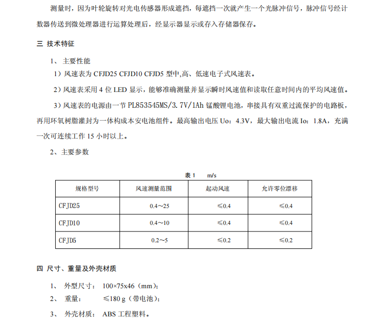 1、CFJD5(CFD-D)機(jī)械電子式風(fēng)表 1 臺