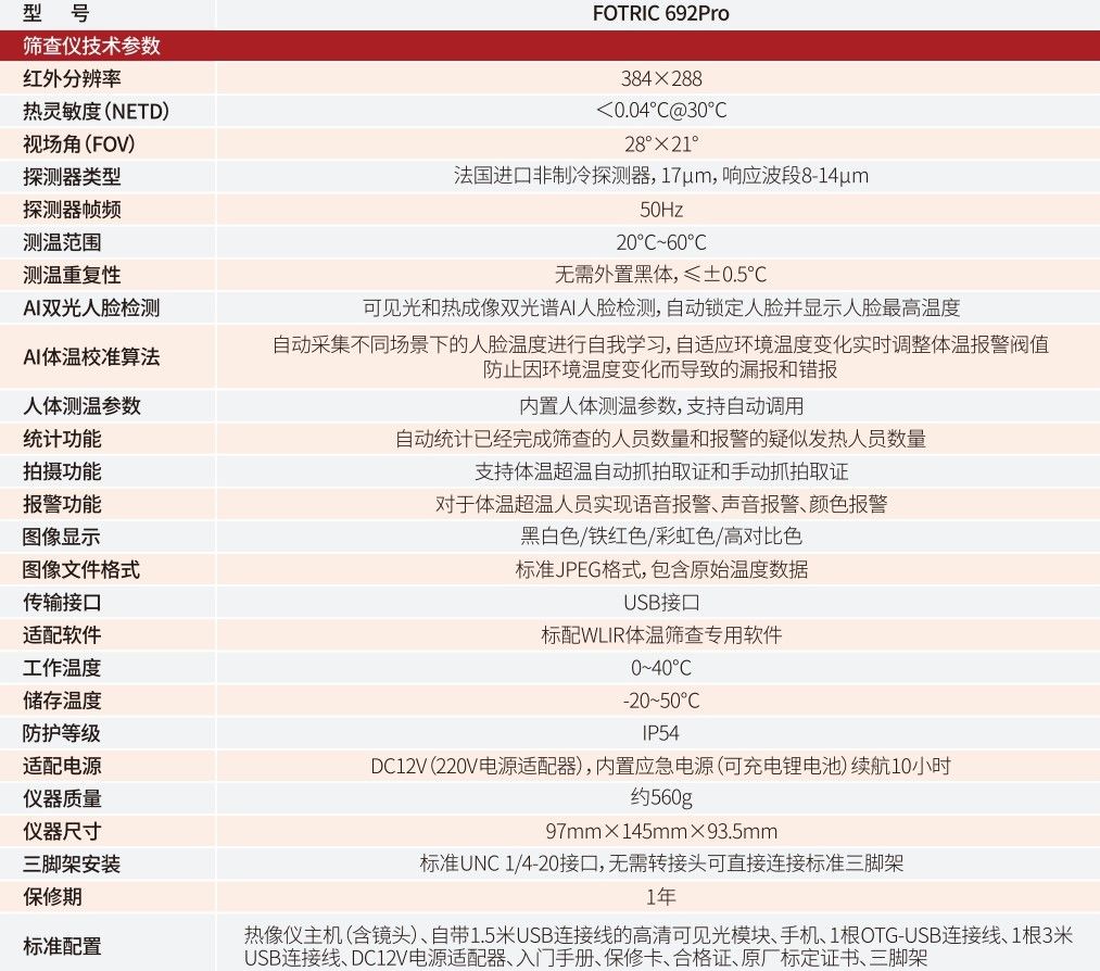 Fotric 692Pro產品參數(shù)