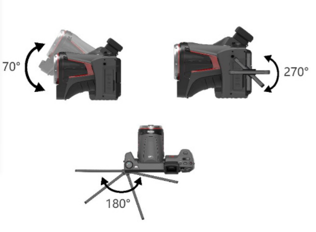 · 采用可旋轉(zhuǎn)設(shè)計(jì),顯示屏旋轉(zhuǎn)270°,鏡頭向上旋轉(zhuǎn)70°