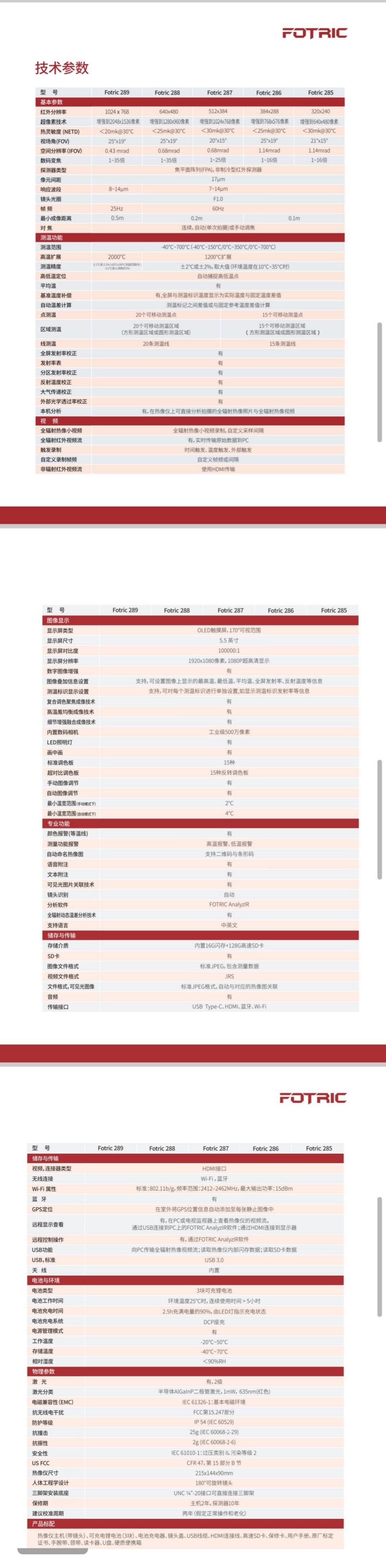 詳細(xì)信息品牌:飛礎(chǔ)科 型號(hào):FOTRIC 280 類型:便攜式 測(cè)量范圍:-20 °C ~ 650°C 測(cè)量精度:±2 °C 或 2% 取大值(在 25 ° 分辨率:2.27 mrad 尺寸:243*95*142 mm 重量:0.73 kg 289:1024*768 288:640*480 287:512*384 286:384*288 285:320*240 287:512*384 286:384*288