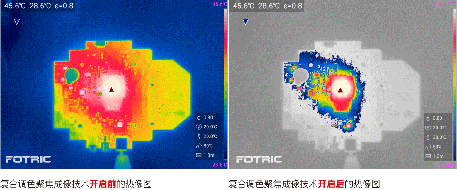 利用FOTRIC自主研發(fā)的復(fù)合調(diào)色聚焦成像技術(shù) ,其出色的熱成像質(zhì)量,非常適用于復(fù)雜場(chǎng)景中分析特定目標(biāo)的細(xì)微溫差,有利于現(xiàn)場(chǎng)快速得出正確的診斷結(jié)論。