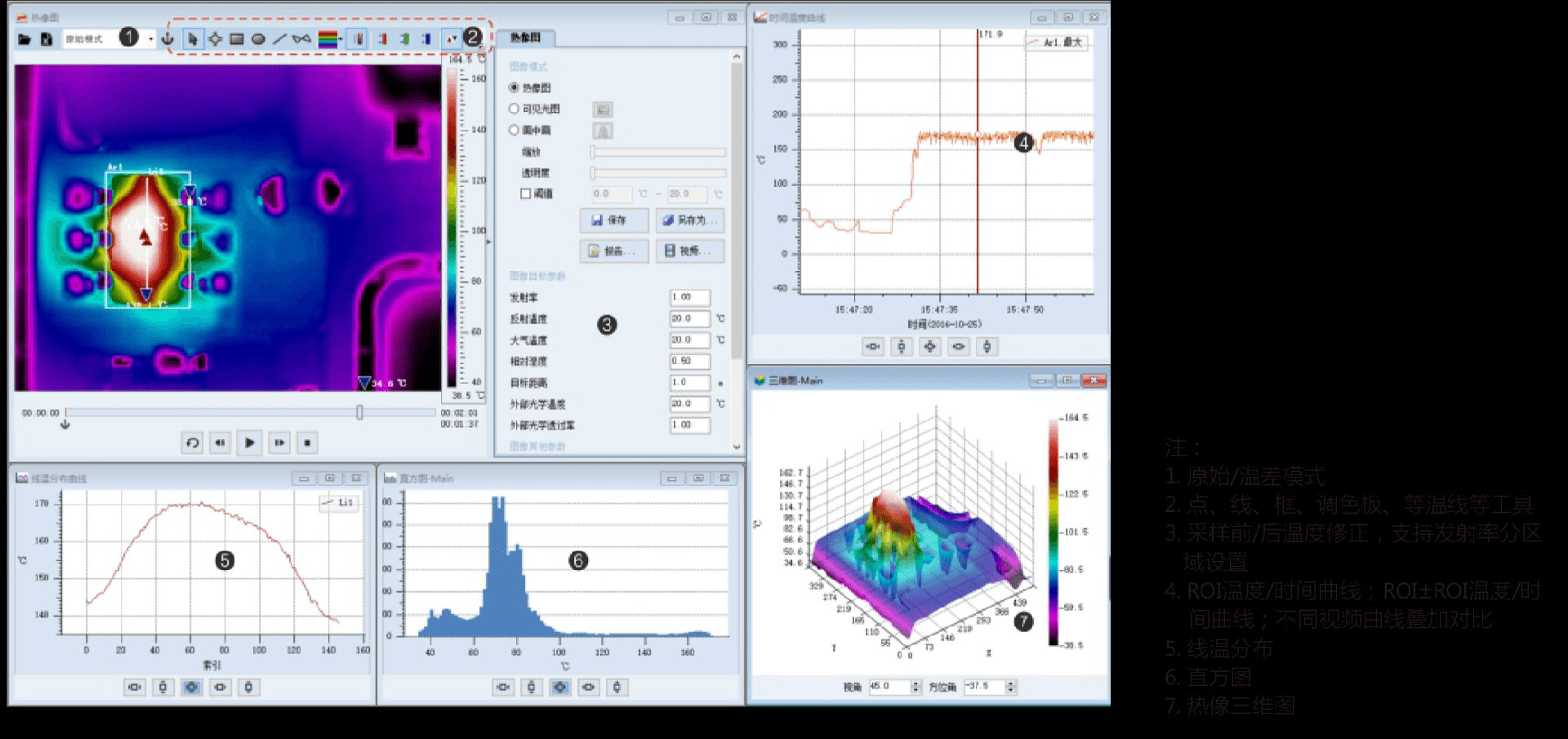 FOTRIC AnalyzIR軟件為滿足研發(fā)用戶使用需求而開(kāi)發(fā),從圖像、溫度及時(shí)間的三維角度來(lái)進(jìn)行測(cè)試分析。