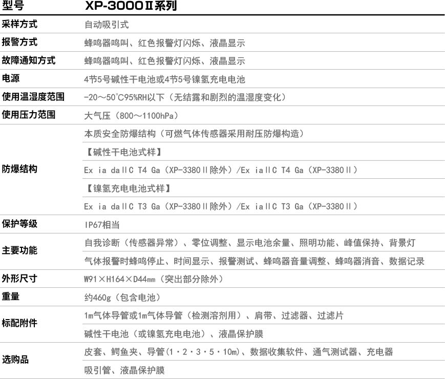 03.手持泵吸式氣體檢測(cè)儀XP-3000產(chǎn)品參數(shù)