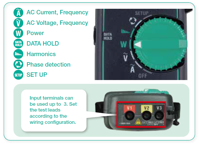 KEW 2062可以單相2線 / 單相3線和三相3線/三相4線的平衡和不平衡測量