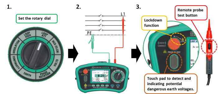ATT:免跳閘技術(shù)(2和3線)對(duì)所有RCD無(wú)跳閘環(huán)路L PE測(cè)試.