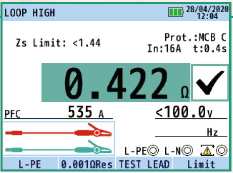 該功能將自動(dòng)檢查TN(或TT接地回路)的測(cè)量回路阻抗是否足夠低,足以使MCB/保險(xiǎn)絲/RCD跳閘(斷開(kāi)),并在顯示屏上給出通過(guò)或失敗的結(jié)果.