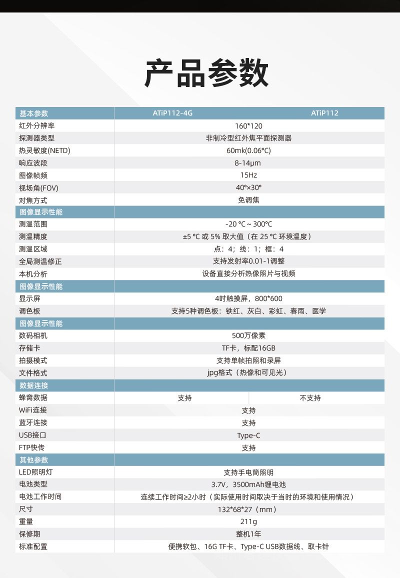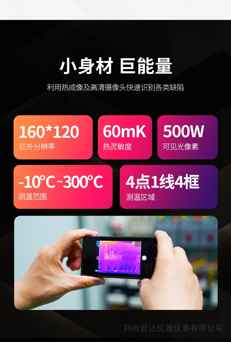 詳細(xì)信息品牌:小安 型號(hào):ATIP112 類型:便攜式 測(cè)量范圍:-20℃-300℃ 測(cè)量精度:±5°或5%取*大值 分辨率:160X120 尺寸:132X68X27 mm 重量:0.21 kg 分辨率:160X120 -