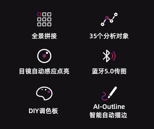 全景拼接、DIY調(diào)色板、藍牙傳圖、智能自動描邊……用戶*想要的實用功能,我們都有。
