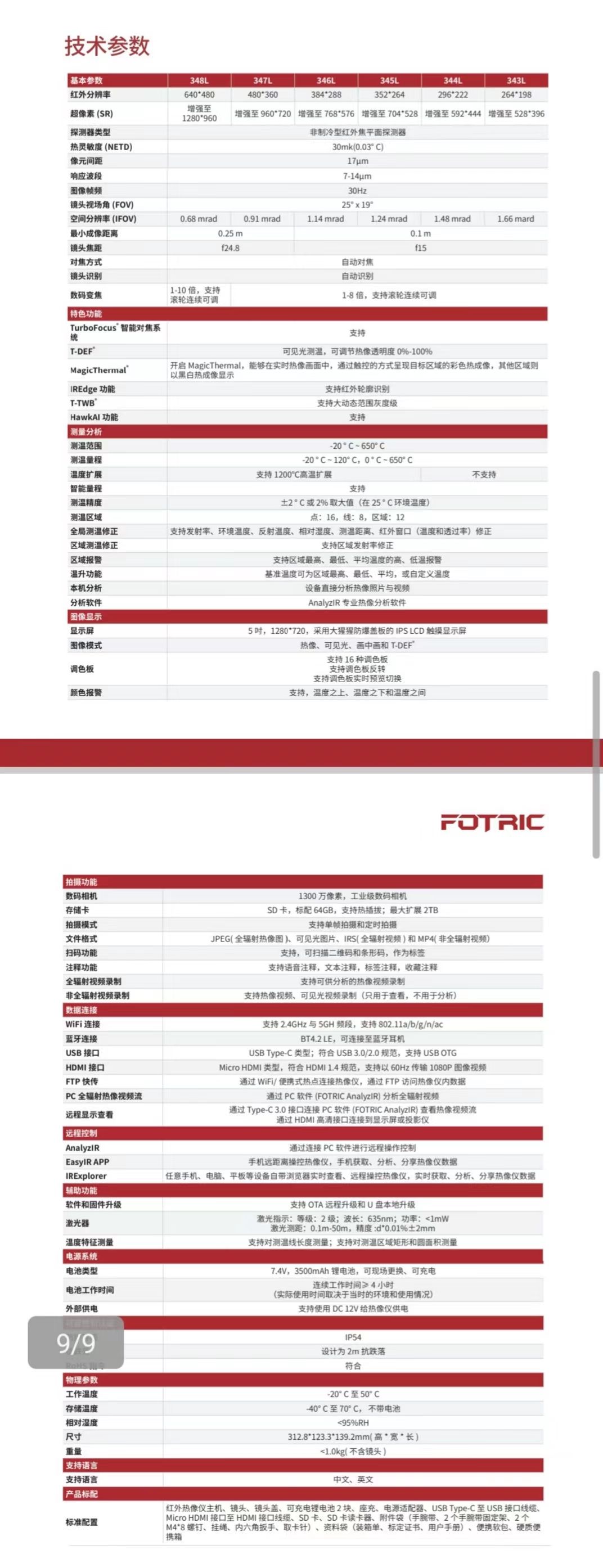 詳細(xì)信息品牌:飛礎(chǔ)科 型號(hào):FOTRIC 340L系列 類型:便攜式 測(cè)量范圍:-20℃-650℃ 測(cè)量精度:±2℃或±2%,取大值 分辨率:640X4890 尺寸:312.8X123.3X139.2mm mm 重量:1.0 kg 348L-L25:640X480 347L-L25:480x360 346L-L25:384X288 345L-L25:352x264 344L-L25:296X222 343L-L25:264x198 345L-L25:352x264 -