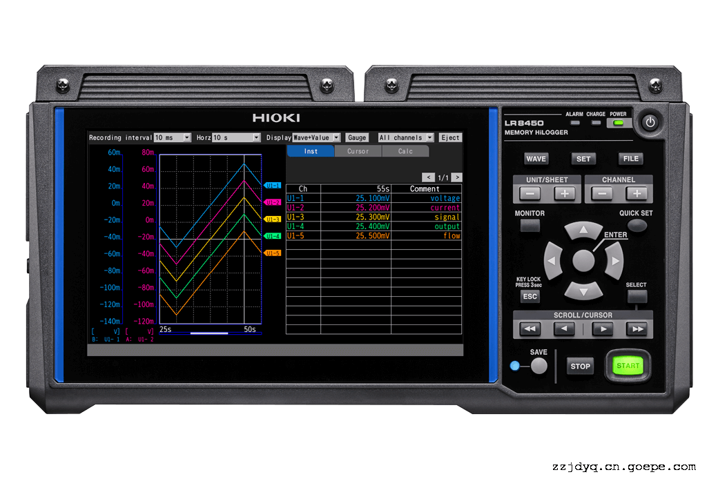 日本日置的LR8450數(shù)據(jù)采集儀能夠同時采集8通道的轉速信號,并且能夠給傳感器提供供電電源,使用標準的ROLS-5PW就能夠和LR8450進行連接,具體連接方法可咨詢上海路陽的工程師。如果是日本日置的LR8431數(shù)據(jù)采集儀,需要使用日本日置的HIOKI 9641連接線和路陽的自供電轉速傳感器配合才可以采集轉速數(shù)據(jù),如果是MR6000、MR8847A、MR8827系列的存儲記錄儀,需要使用8970頻率單元和路陽的自供電轉速傳感器配合使用進行轉速數(shù)據(jù)采集記錄。