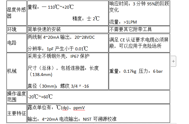 詳細信息| 詢價留言品牌:菲美特 型號:DPT810 加工定制:否 測量范圍:-110℃〜+20℃ 測量精度:士2℃ 測量對象:石化、電力、制藥、工業(yè)氣體、熱 溫度范圍:20℃~+60 ℃ 分辨率:1pF產(chǎn)生小于0.01℃ 尺寸:138.4 mm 電壓:兩線制4~20mA輸出 v 電源:20~28VDC 尺寸:138.4 mm -