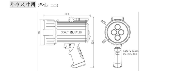 探傷脫脂熒光檢測黑光燈CJ100X-10K尺寸圖