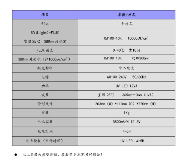 諾信1000uw/cm²中心輻照度手持黑光燈CJ100X-10K