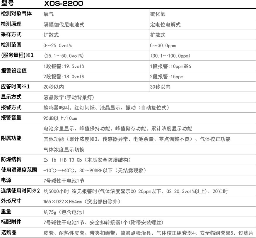 ※1 無報警狀態(tài)(顯示 H2S 濃度為 5ppm 以下、O2 濃度為 20.3vol% 以上)、20℃時。- 累計濃度(T×C)顯示功能※2